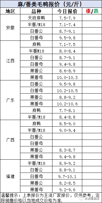 毛鸭报价