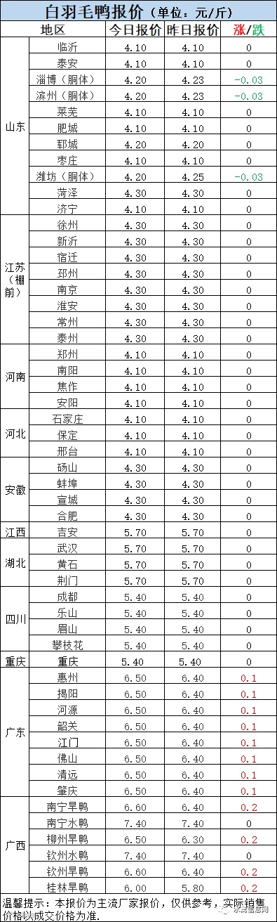 鸭苗报价全线涨后持稳。天气恶劣,行情低迷,鸭苗上升阻力较大。