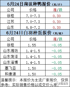 一、6月23日晚至6月24日 白羽肉鸭报价