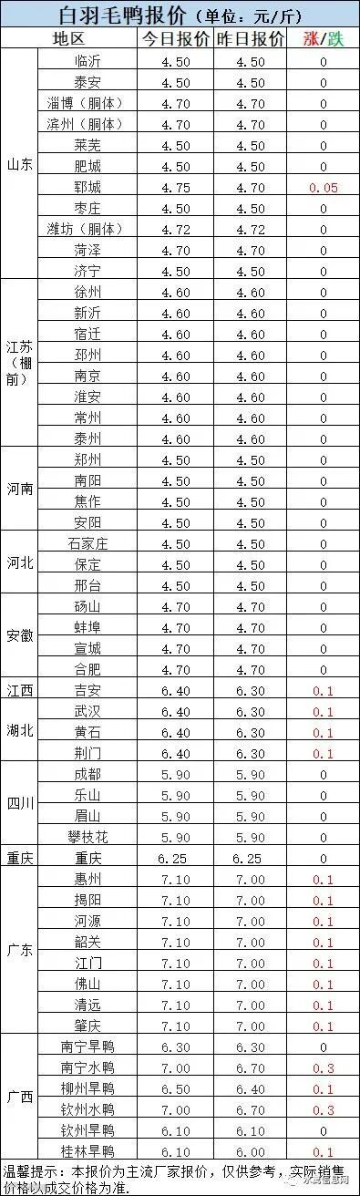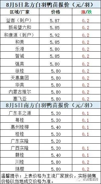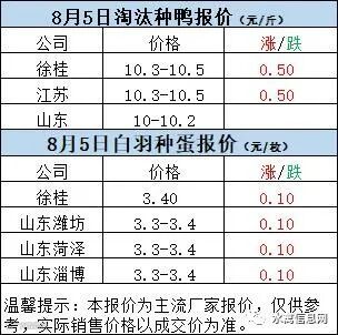 一、8月4日晚至8月5日 白羽肉鸭报价