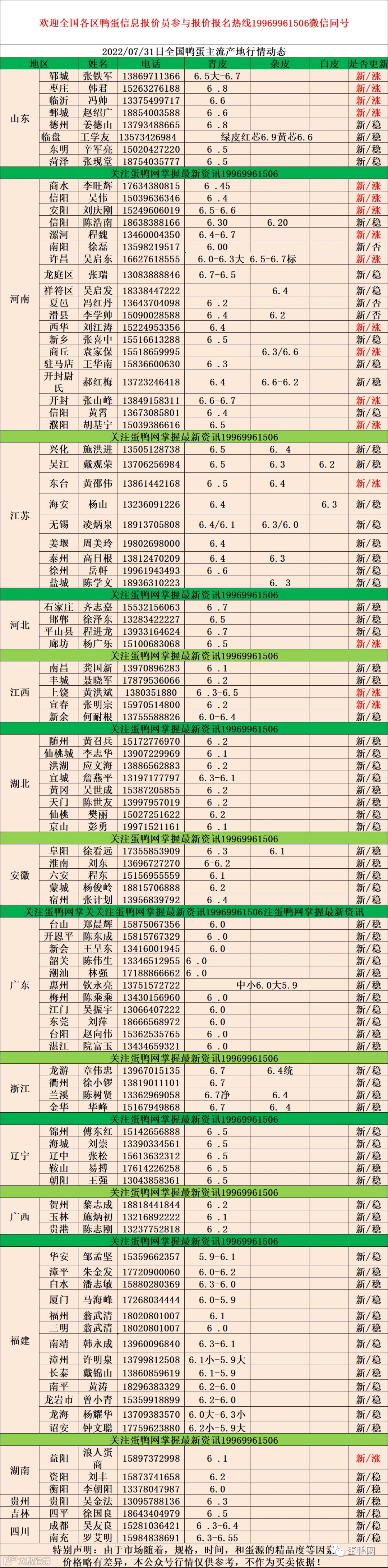 2022年7月31日鸭蛋报价