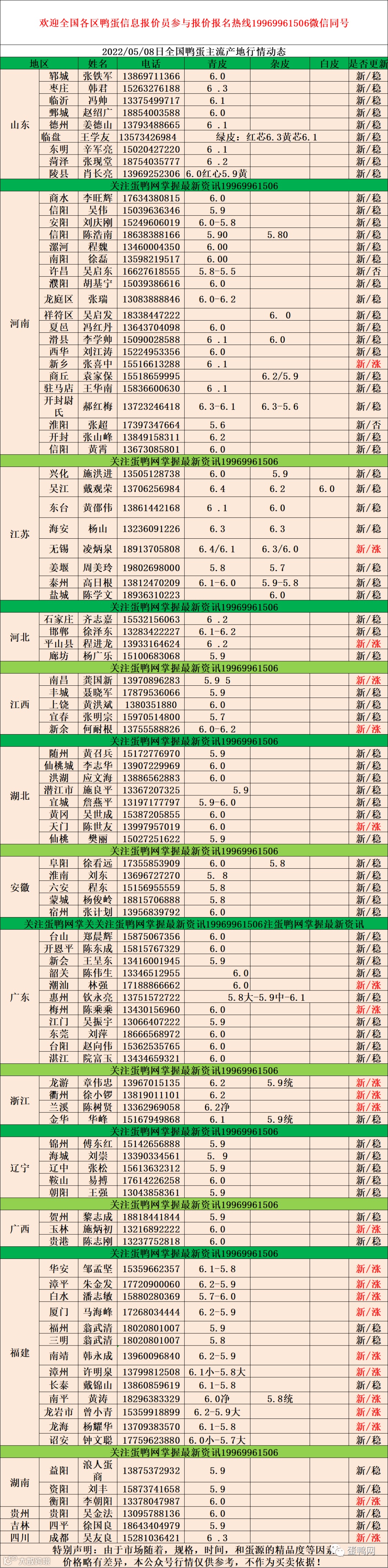 2022年5月8号鸭蛋报价