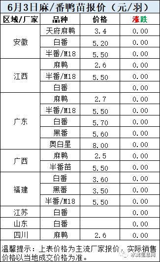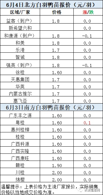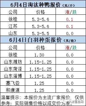 一、6月3日晚至6月4日 白羽肉鸭报价