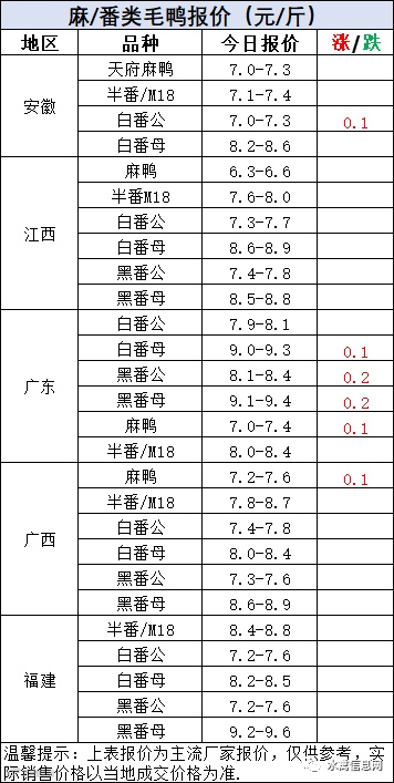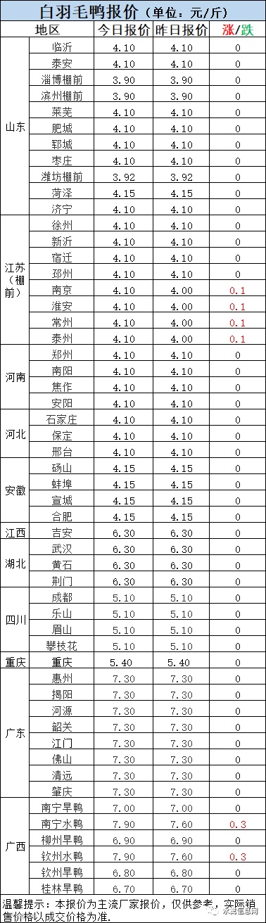 明日北方鸭苗报价混乱,计划一般,厂家多有议价销售,成交价弱势运行。天气渐热,影响补栏,苗价略显疲态,近期回调盘整态势。