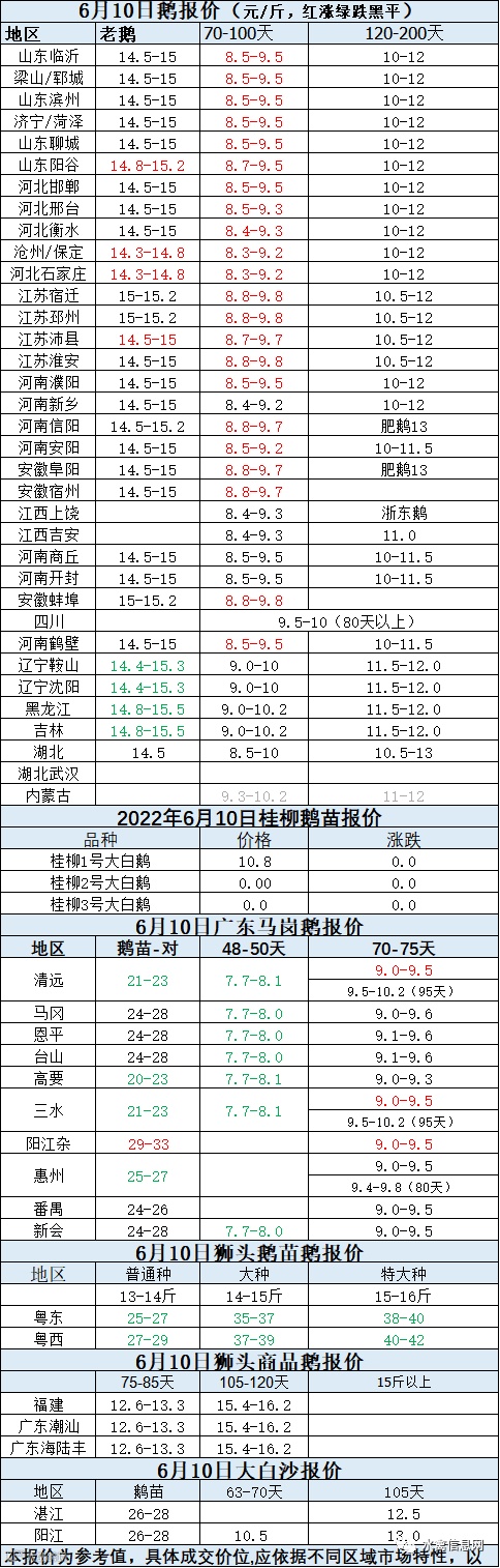2022年6月10日鹅种蛋价格(元/枚)部分停报