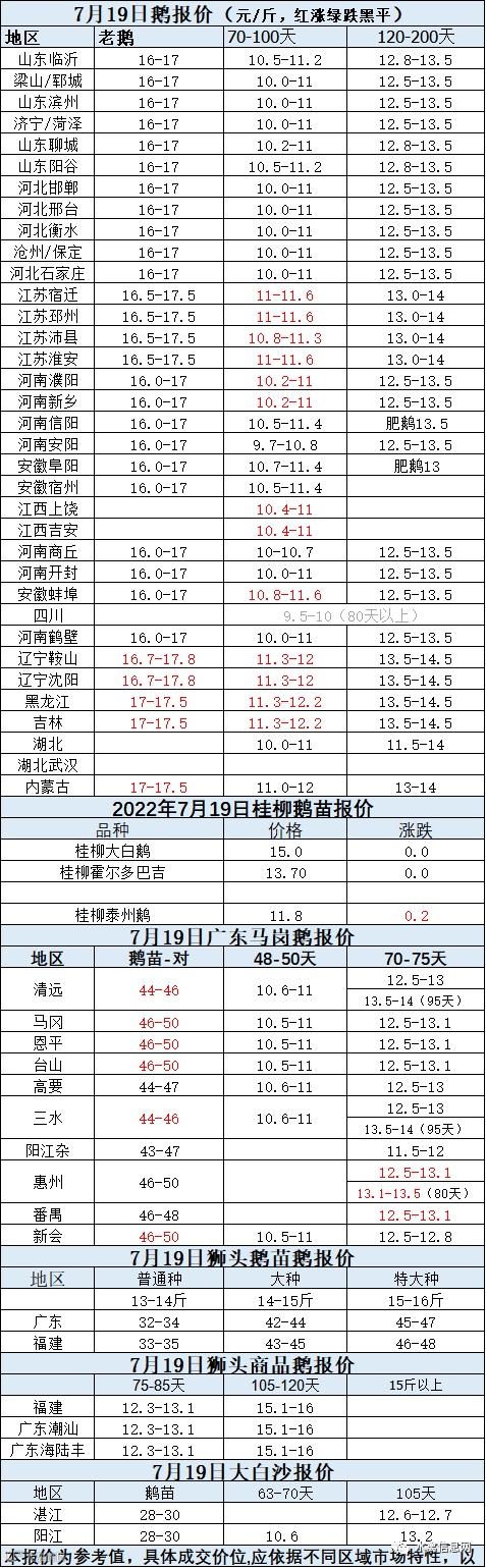 2022年7月19日鹅种蛋价格(元/枚)部分停报
