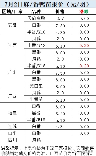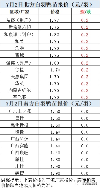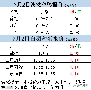 一、7月1日晚至7月2日 白羽肉鸭报价