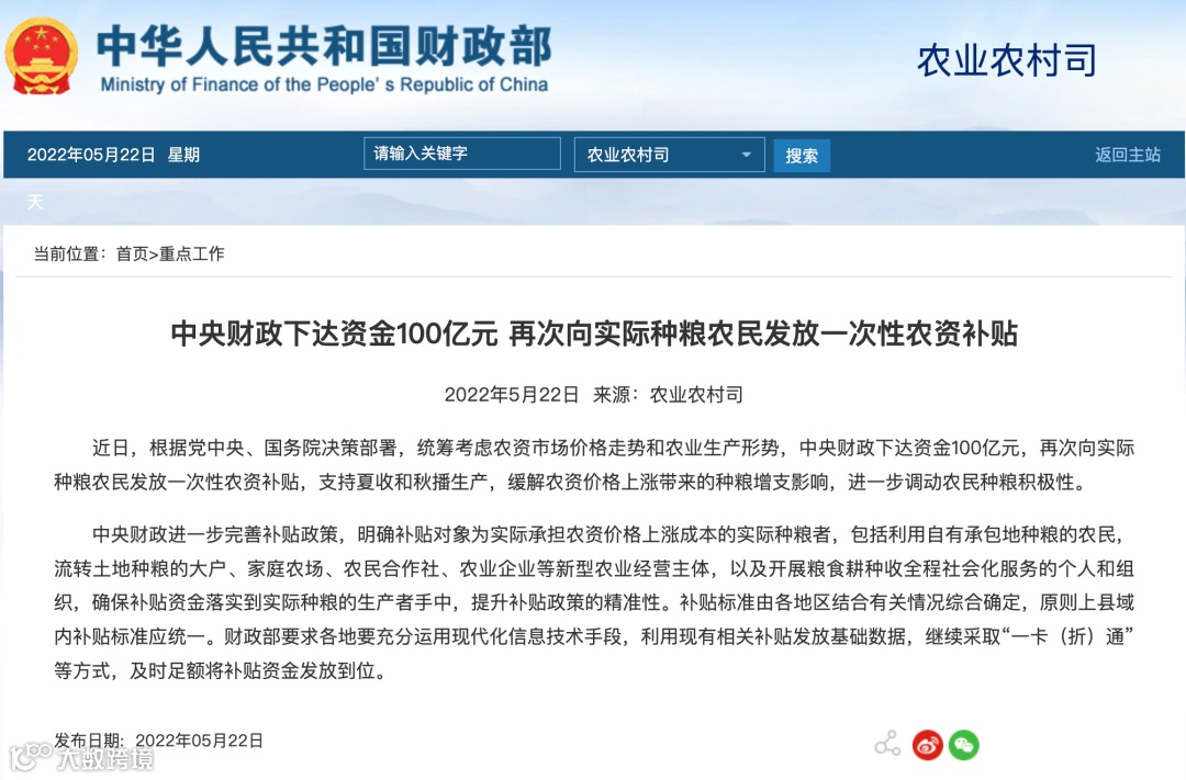 你领到补贴了嘛!!!100亿元!中央再次补贴实际种粮农民!