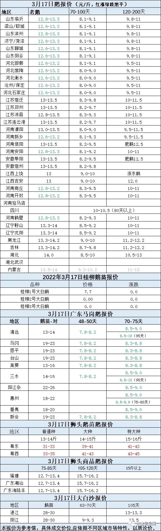 2022年3月17日各品种鹅苗价格