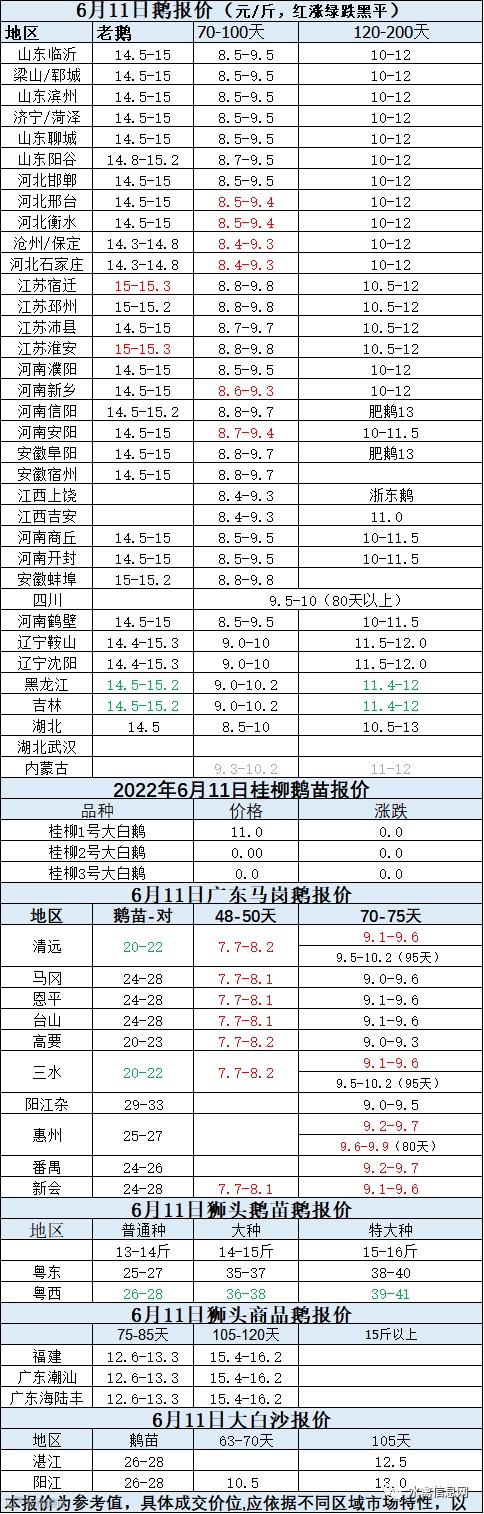 2022年6月11日鹅种蛋价格(元/枚)部分停报