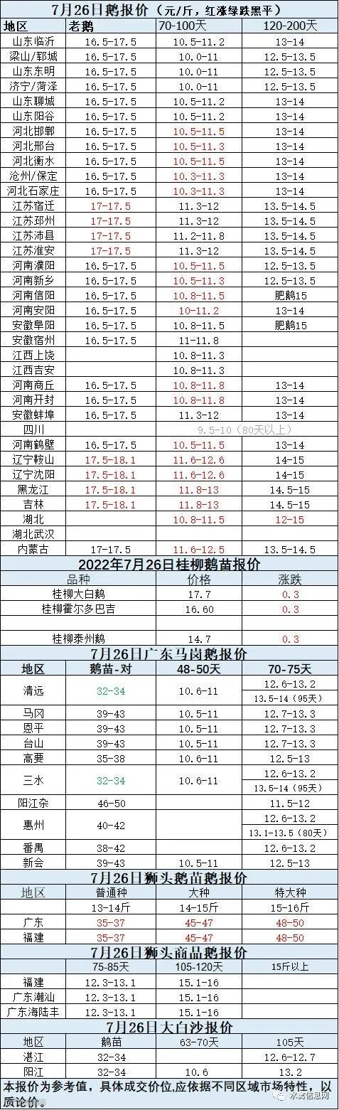 2022年7月26日各品种鹅苗价格