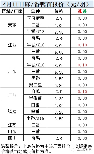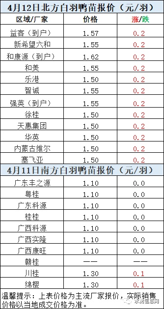 一、4月11日晚至4月12日 白羽肉鸭报价