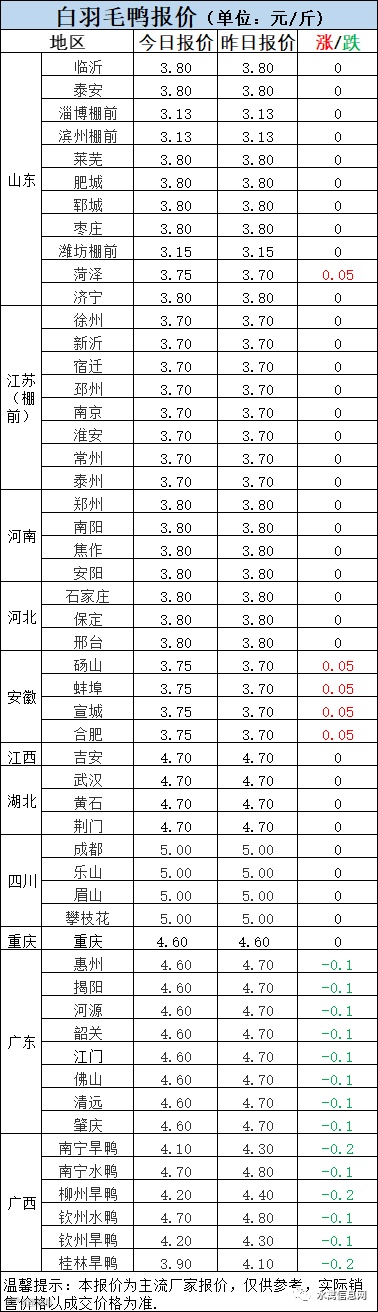 持续反弹,鸭苗报价北方上涨0.2元/羽,四川上涨0.1元/羽,南方报稳。疫情影响下,市场成交价较乱,注意询价。当前市场疫情主导,各地区运输情况不一,政策执行情况不一。
