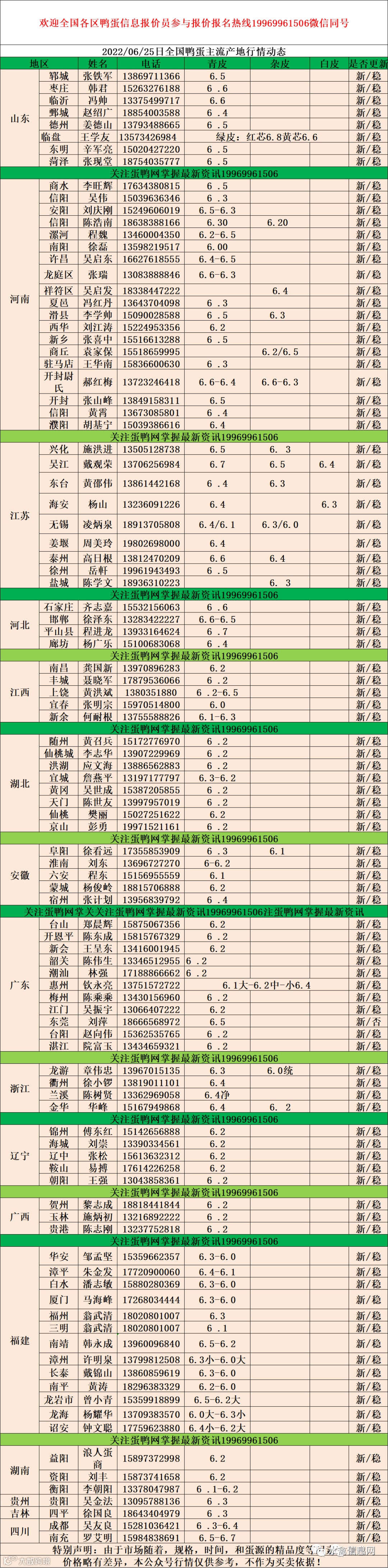 2022年6月25号鸭蛋报价 益牧堂水禽信息