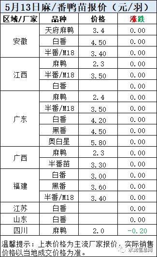 一、5月13日晚至5月14日 白羽肉鸭报价