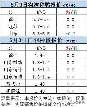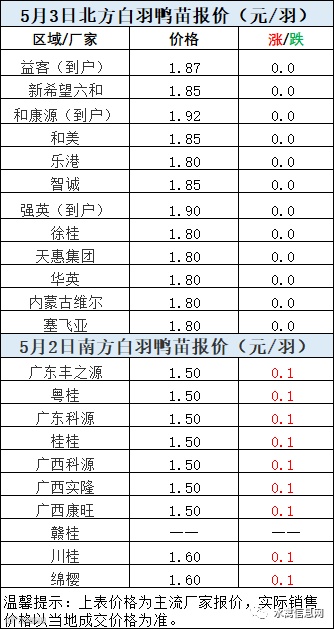 一、5月2日晚至5月3日 白羽肉鸭报价