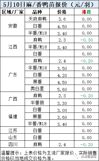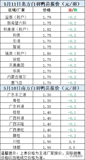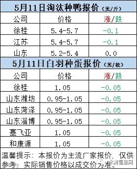 一、5月10日晚至5月11日 白羽肉鸭报价