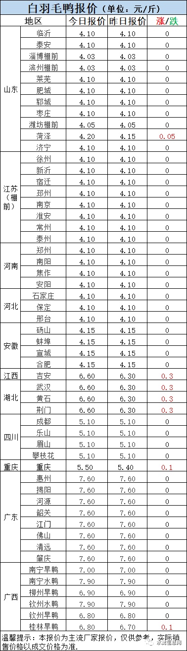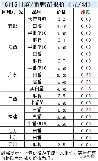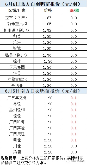一、6月5日晚至6月6日 白羽肉鸭报价