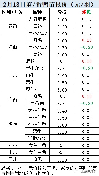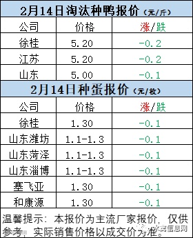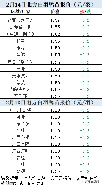 一、2月13日晚至2月14日 白羽肉鸭报价