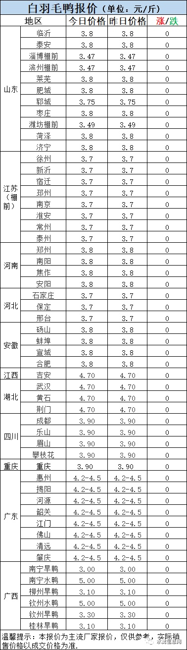 养殖成本上涨,供需博弈,今日鸭苗全线下滑。