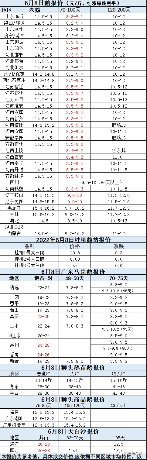 2022年6月08日鹅种蛋价格(元/枚)部分停报