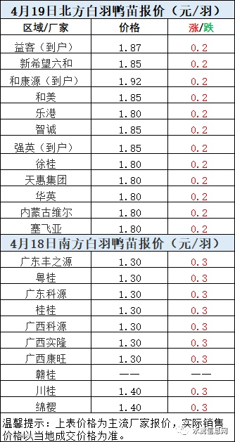 一、4月18日晚至4月19日 白羽肉鸭报价