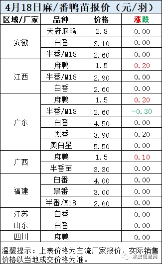 二、4月18日晚至4月19日 麻鸭/半番毛鸭报价。