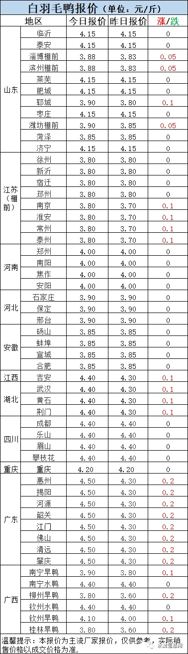 今晚毛鸭报价北方稳中上涨。当前市场鸭不多,阶段性缺鸭,但运输困难。疫情渐成常态,艰难中求生。