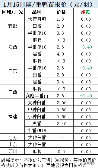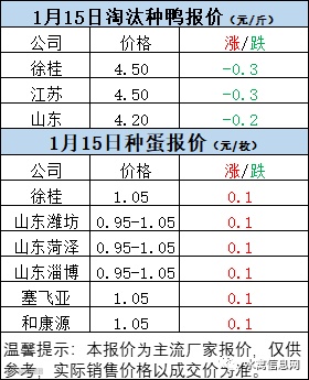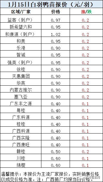 一、2022年1月15日白羽鸭苗报价