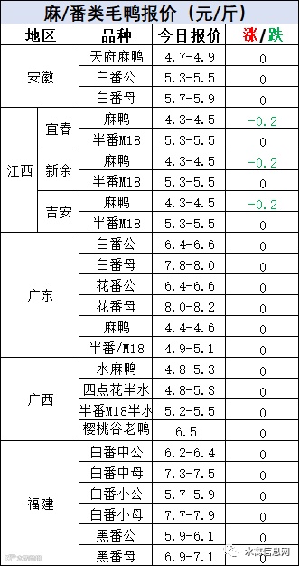 麻/番鸭苗弱势波动。