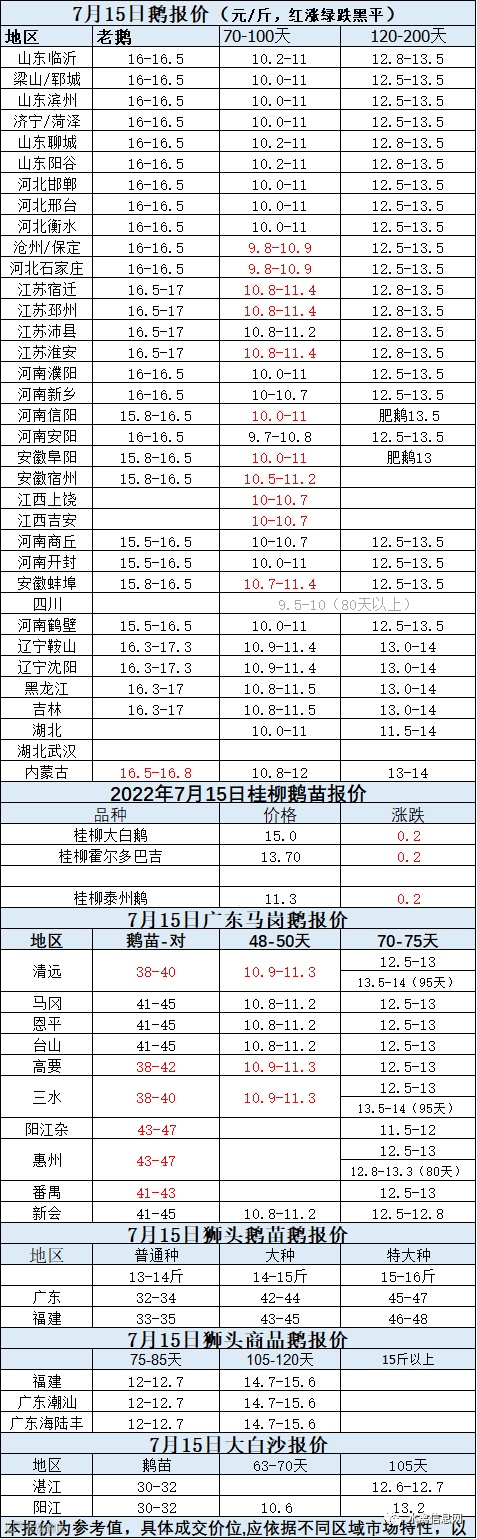 2022年7月15日各品种鹅苗价格