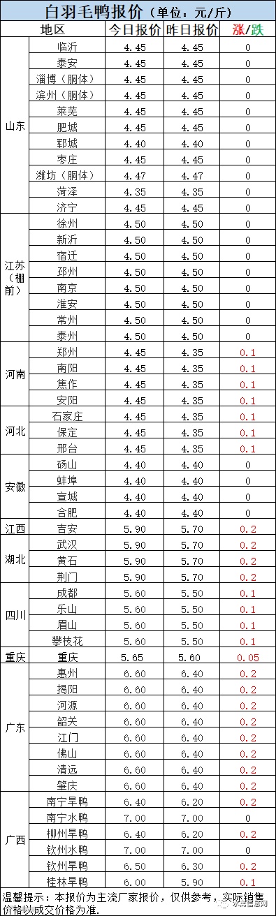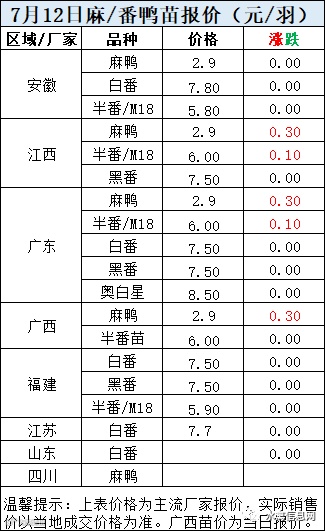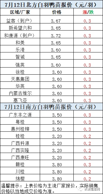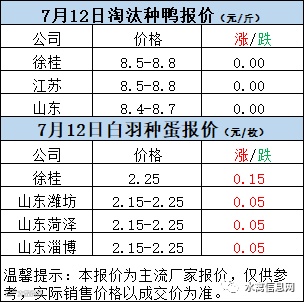 一、7月11日晚至7月12日 白羽肉鸭报价
