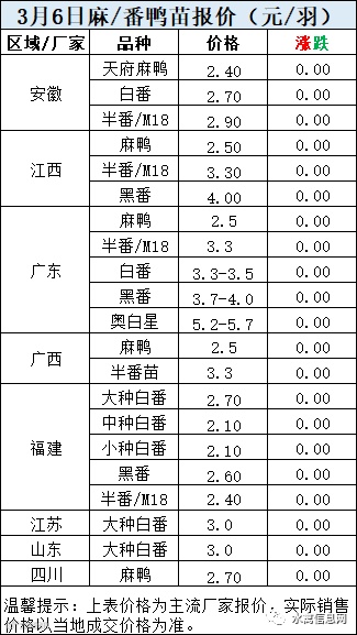 一、3月6日晚至3月7日 白羽肉鸭报价