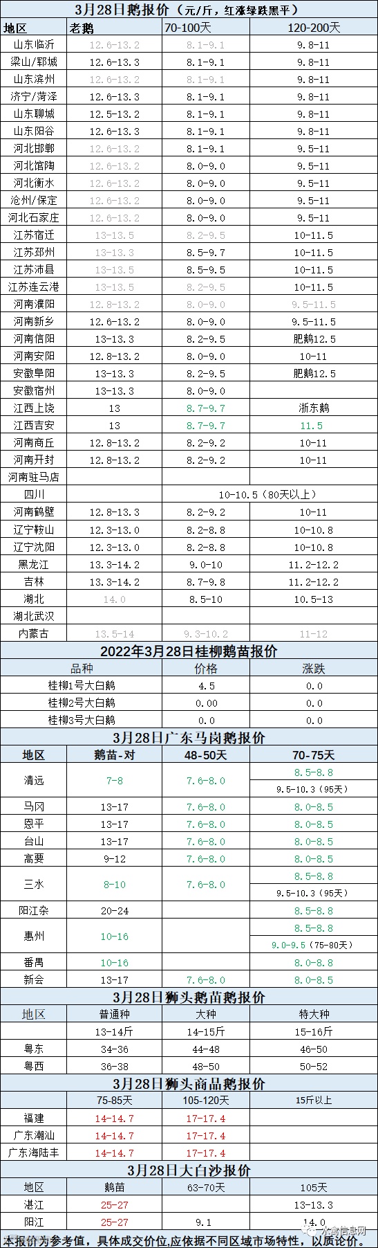 2022年3月28日鹅种蛋价格(元/枚)部分停报