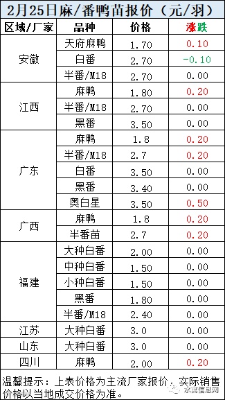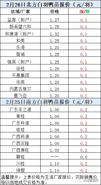 一、2月25日晚至2月26日 白羽肉鸭报价