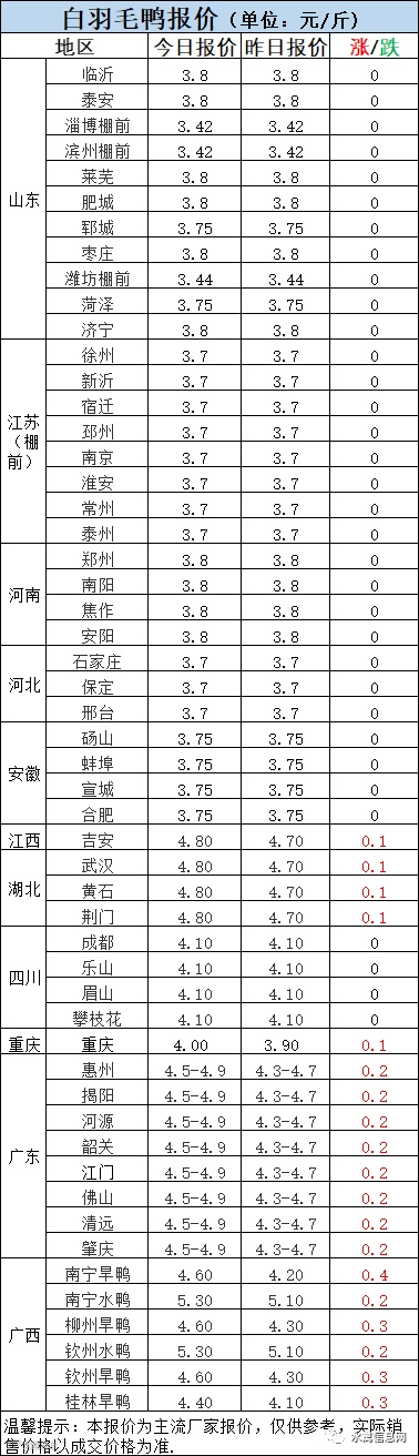 南方毛鸭报价稳后反弹大涨。