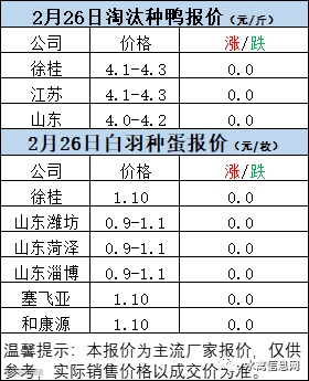 一、2022年2月26日白羽鸭苗报价