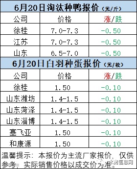 一、6月19日晚至6月20日 白羽肉鸭报价