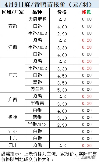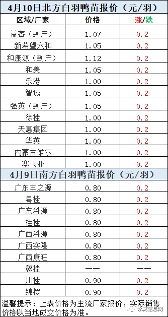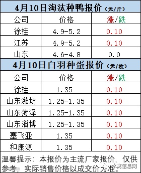 一、4月9日晚至4月10日 白羽肉鸭报价