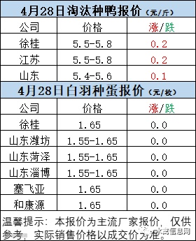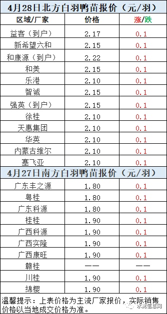 一、4月27日晚至4月28日 白羽肉鸭报价