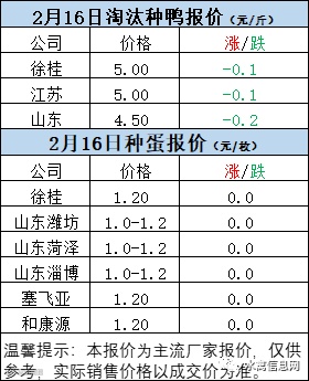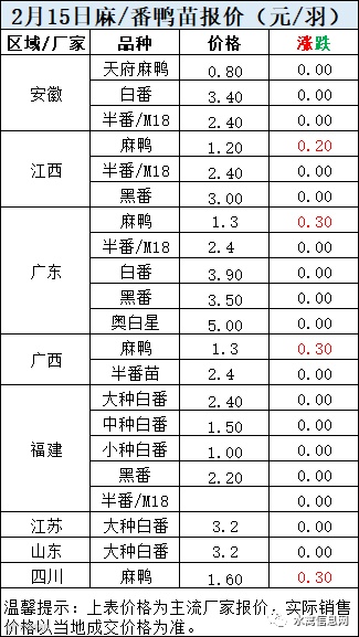 一、2月15日晚至2月16日 白羽肉鸭报价