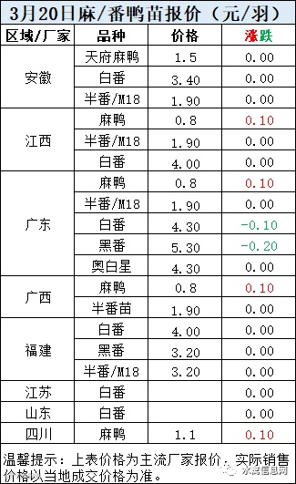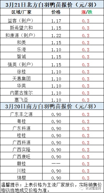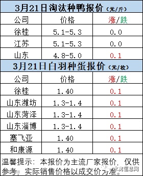 一、3月20日晚至3月21日 白羽肉鸭报价