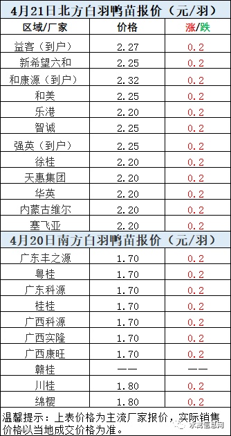 一、4月20日晚至4月21日 白羽肉鸭报价