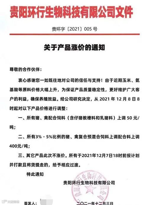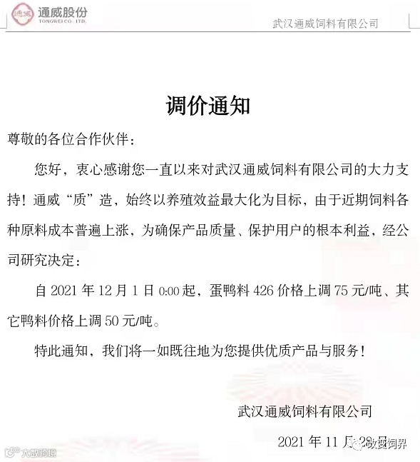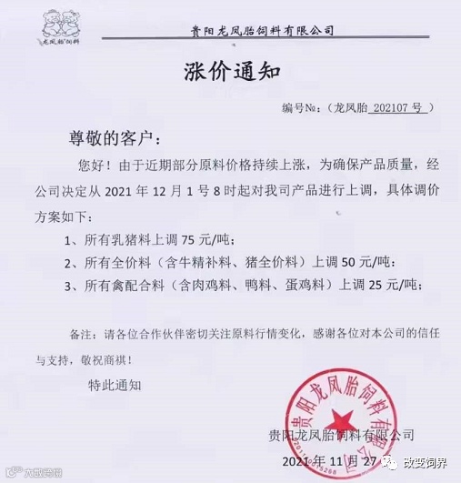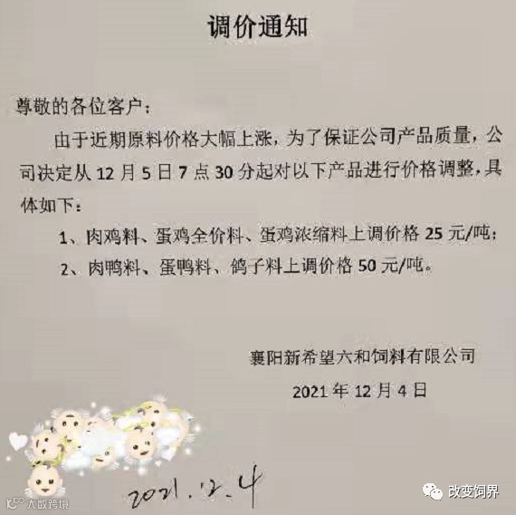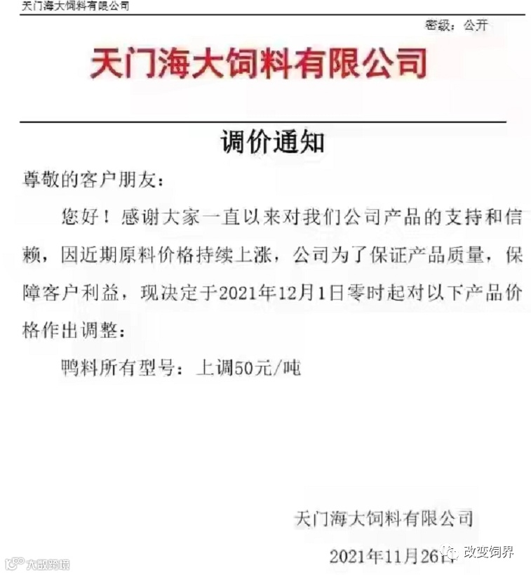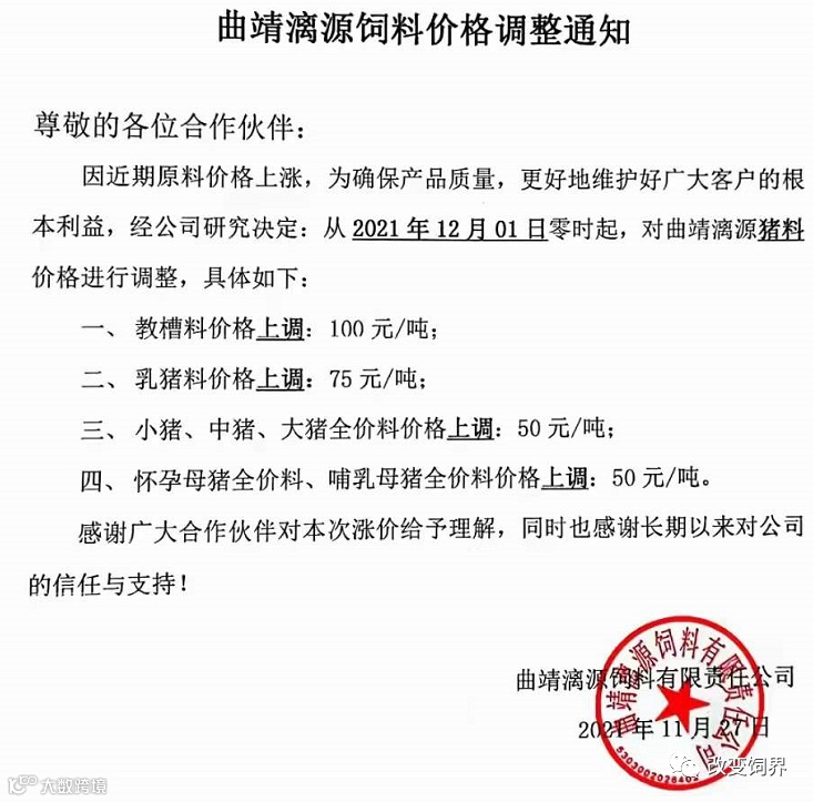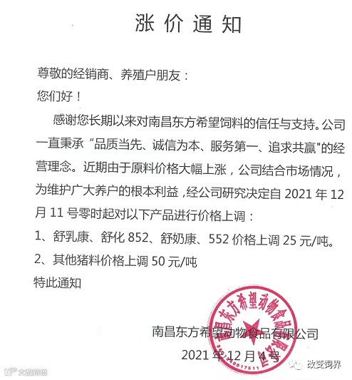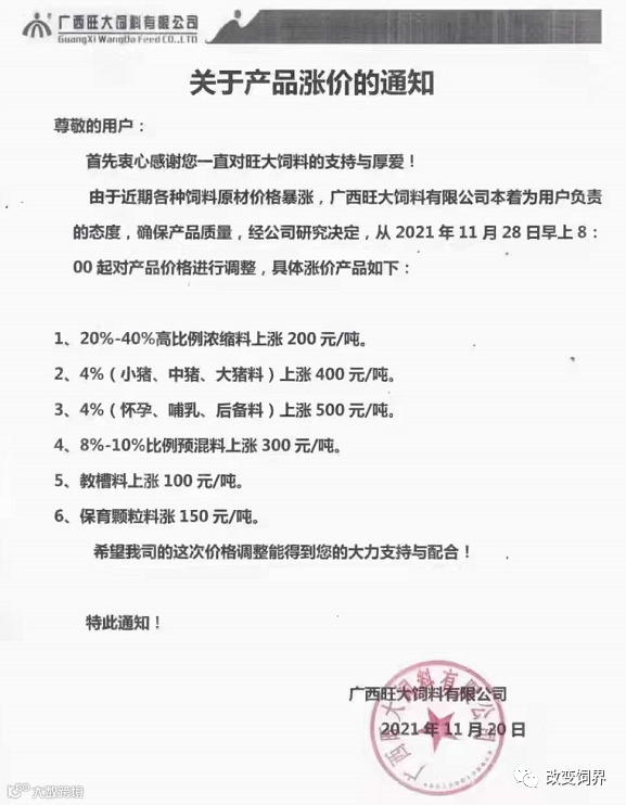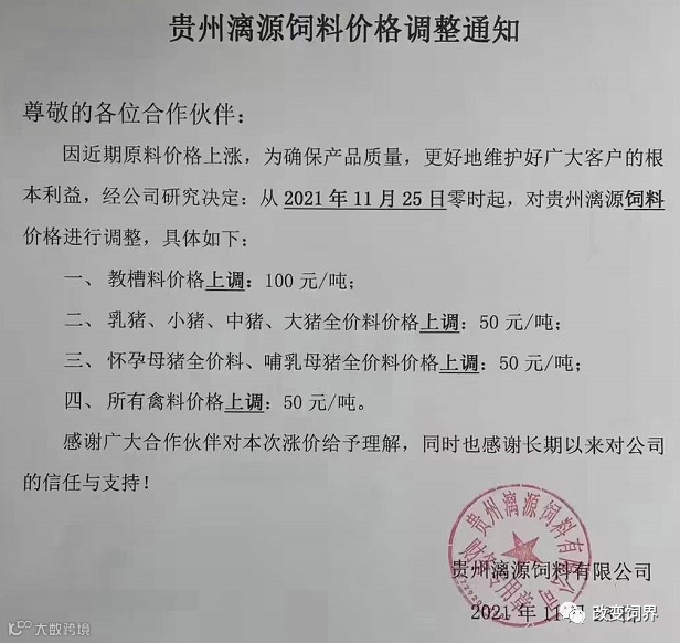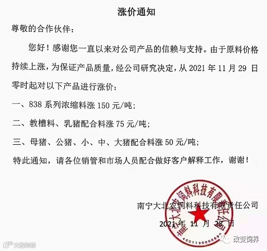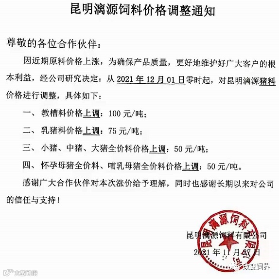 最新饲料涨价通知