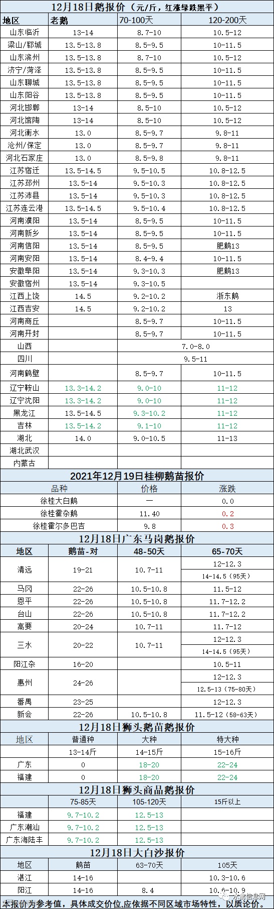 2021年12月18日各品种鹅苗价格