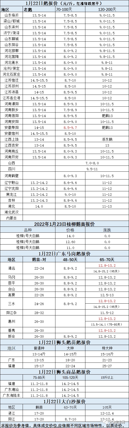 2022年1月22日各品种鹅苗价格