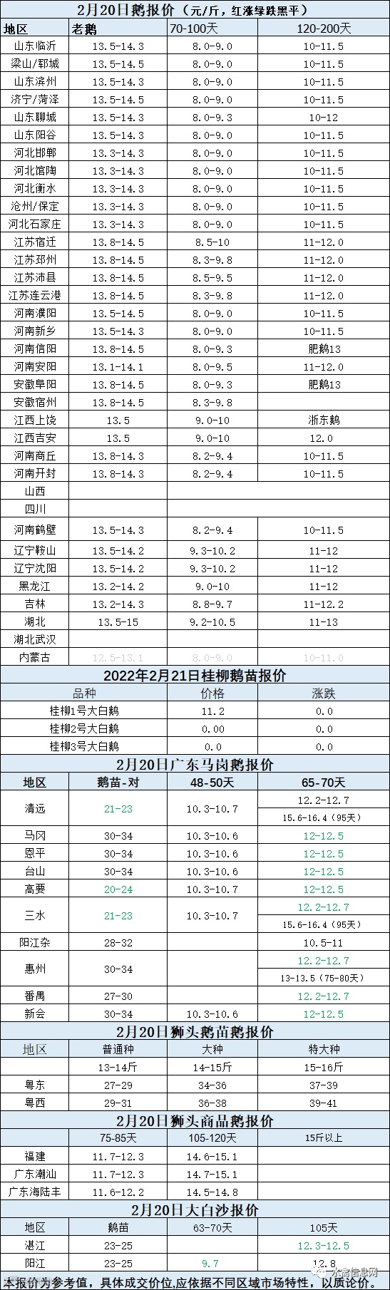 2022年2月20日各品种鹅苗价格