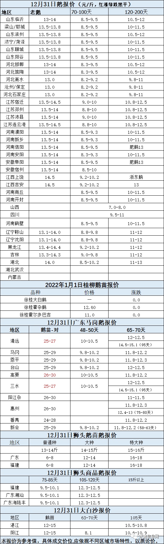 2021年12月31日各品种鹅苗价格