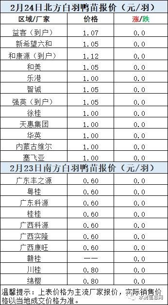 一、2022年2月24日白羽鸭苗报价