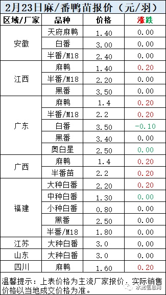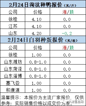 一、2月23日晚至2月24日 白羽肉鸭报价